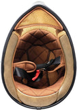 GDM® REBEL™ Retro Full Face Vintage Matte Black Motorcycle Helmet is DOT FMVSS-218 certified. It features double D-ring chin strap, Its shell is constructed using Injection-Molded ABS with Expanded polystyrene inner shell. It also features Contrasting diamond-stitched quilted foam padding liner. Please refer to the following size guide to determine your correct size. To choose your correct helmet size, please measure the circumference of your head 1" above your eyebrows around your head and refer to the GDM Duke Helmets size guide photo. Please note that the size guide is for reference only and cannot guarantee a perfect fit. SMALL: 21 5/8 – 22 IN 55-56 CM | MEDIUM: 22 ½ -- 22 7/8 IN 57-58 CM | LARGE: 23 1/4 -- 23 5/8 IN 59-60 CM | X-LARGE: 24 -- 24 3/8 IN 61-62 CM | 2X-LARGE: 24 3/4 -- 25 ¼ IN 63-64 CM